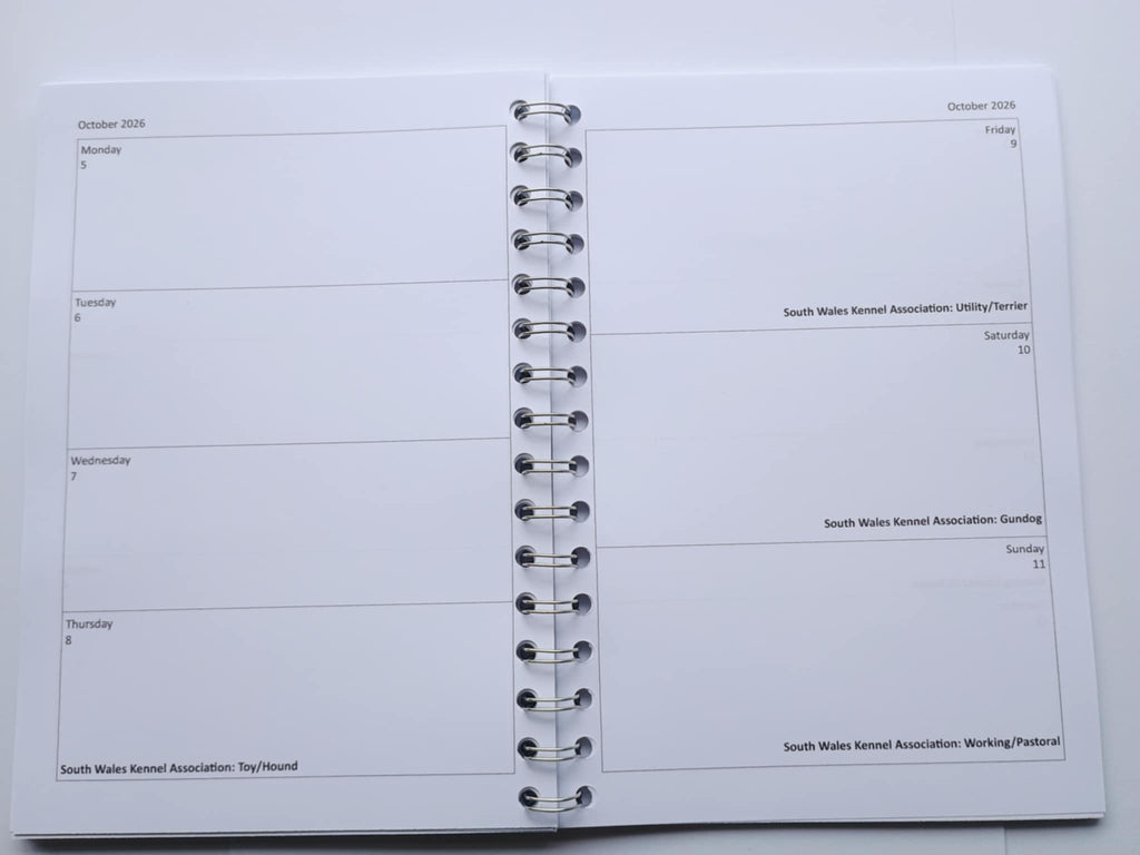 The dog show dates diary has week to view with all UK general and group championship show dates within it and a list of the 2027 general and group shows at the back.